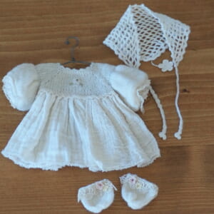 「ポワン袖ワンピとストールのセット」刺繍が可愛いポワン袖ワンピとストール、靴下のセットです。