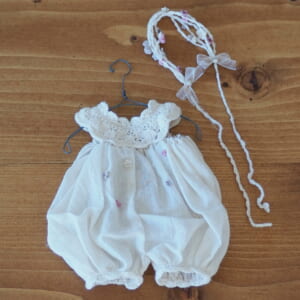 「お花いっぱいロンパースとヘドレのセット」ちいさなお花がいっぱい咲いたロンパースとヘッドドレスのセットです。