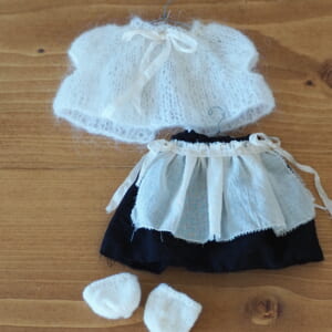 「ふわふわセーターのセット」ふわふわセーターとエプロンスカート、靴下のセットです。