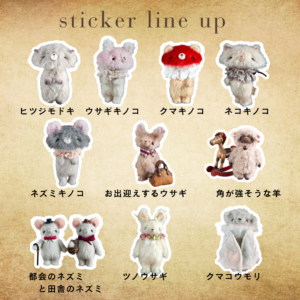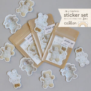 「貼ってはがせる sticker set」めもりぃシリーズのぬいぐるみをステッカー化しました! 屋外OK・耐水性・再剥離可能で3枚入です!