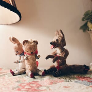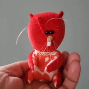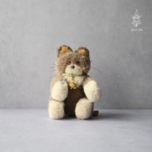 「赤い靴の猫」古いぬいぐるみを思わせる懐かしいぬいぐるみ。