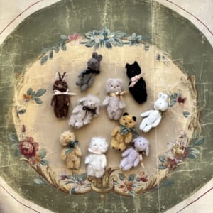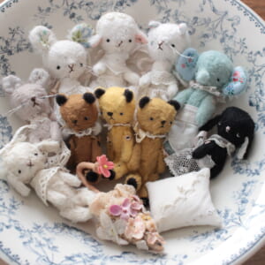 海外の作家さんがアンティークライクに制作したミニチュアのテディベアやアニマルたち。