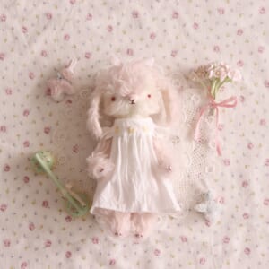 「22cmぬいぐるみ うさぎ」ふわふわのモヘアから生まれたピンクのうさぎです。