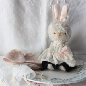 「レトロぬいぐるみなウサギさん」約35cmくらいの大きめのぬいぐるみは製作数はかなり少なめ。少しずっしりしていて存在感がある子です。