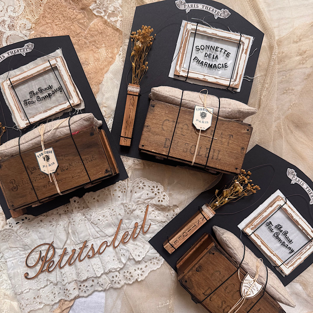 フランスの片田舎の家にあるような、素朴なアンティーク風の木工雑貨やディスプレイ用の什器、小家具などを作っている「petit soleil(プチソレイユ)」。木や布といった素材の質感や細かな装飾など、ミニチュアとは思えないぐらい丁寧な作品を生み出しています。ぬいぐるみと一緒に飾りたい雑貨や家具などを持ってきてくれますよ。お気に入りのぬいぐるみと一緒に、ディスプレイを楽しんでみませんか。