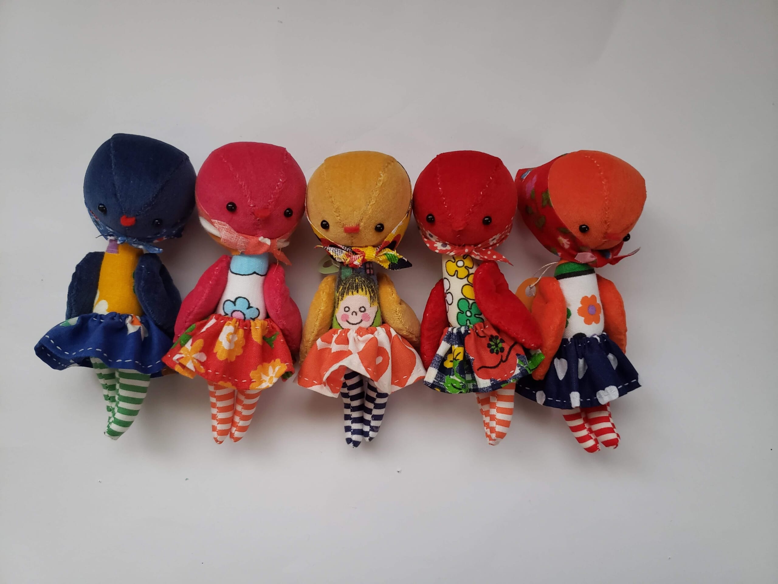 昭和レトロを思わせるコミカルな表情のぬいぐるみです。