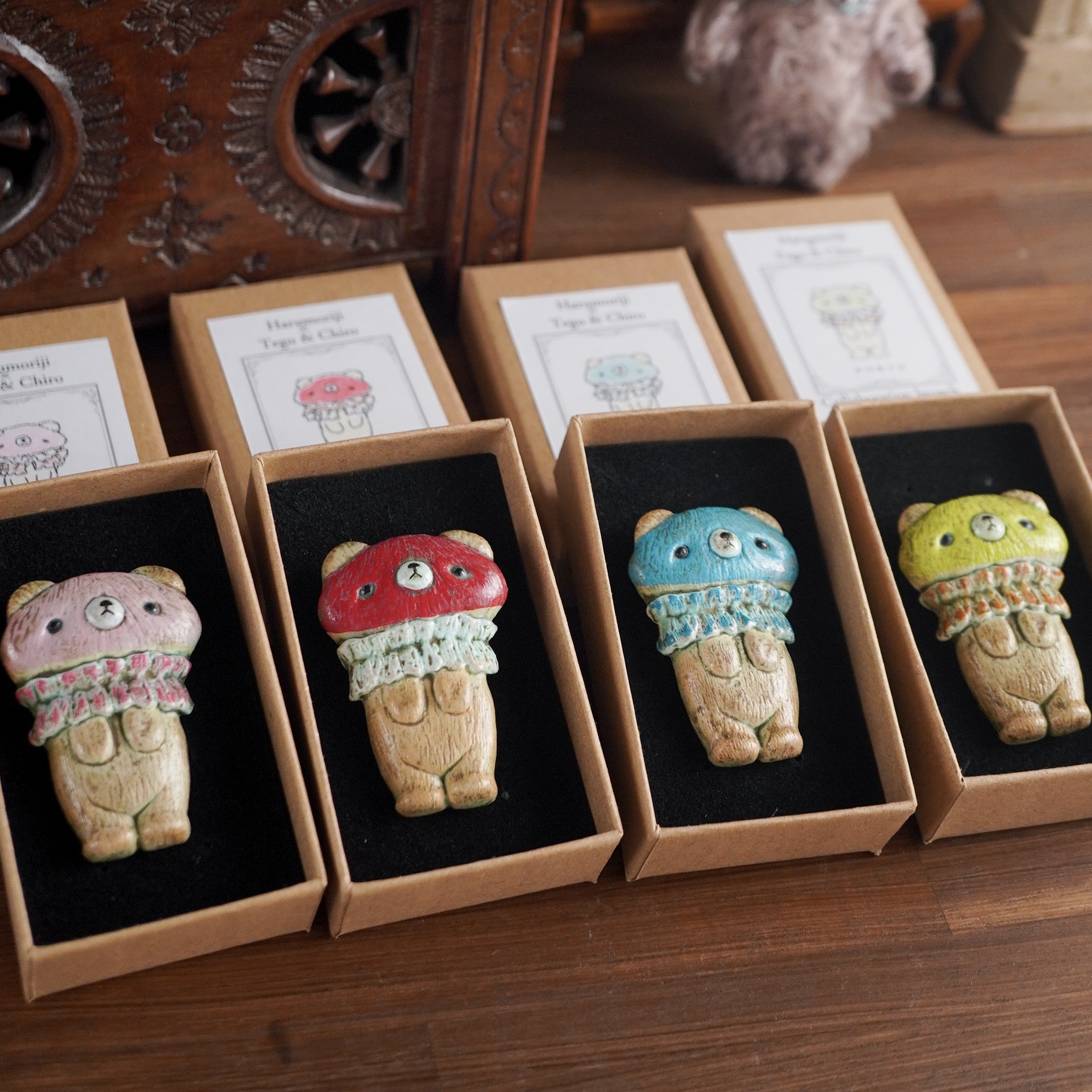 今回はキノコシリーズが多く出てくる予定です。新登場するネコキノコさんなどちょっと変わった子たちも登場。ぬいぐるみは一点物なのでどんな子がいるかは当日のお楽しみに!